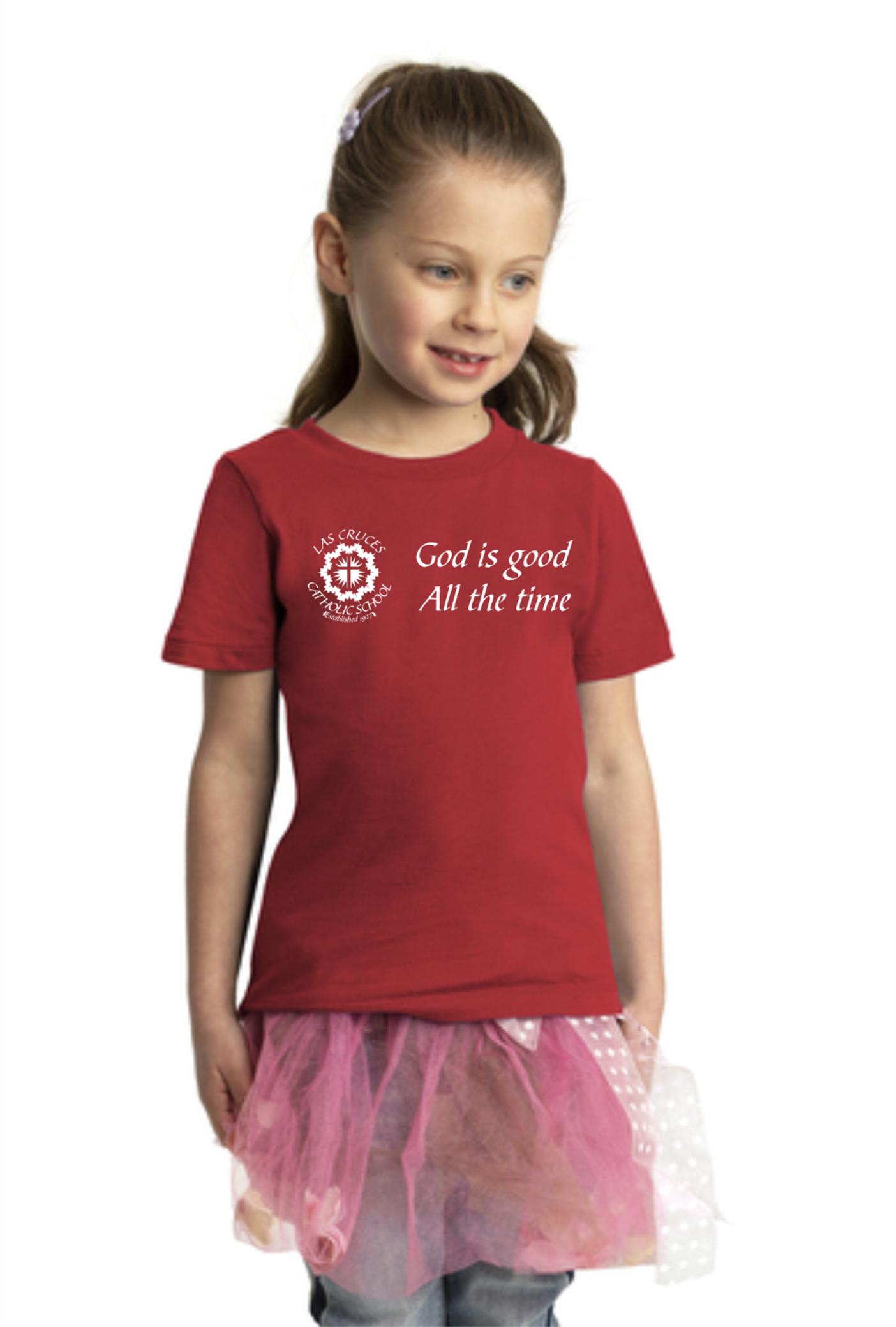 LCCS God Is Good Toddler Tee - Red / 2T is backordered and will ship as soon as it is back in stock.